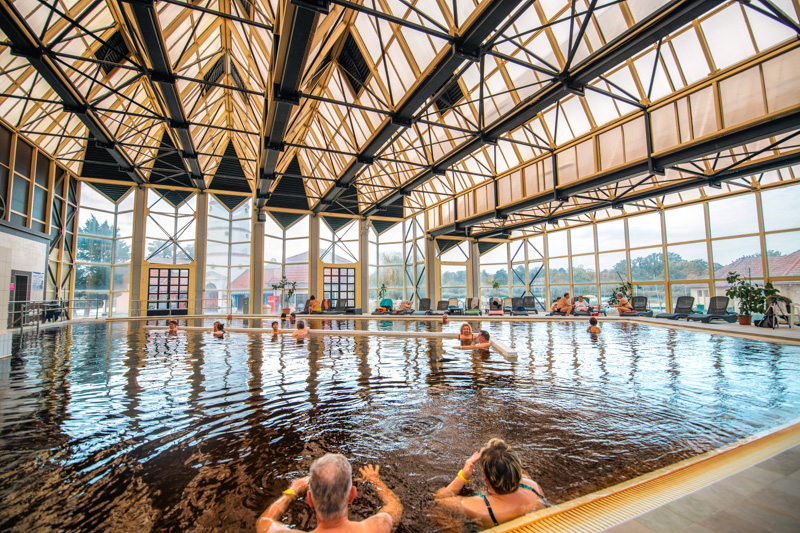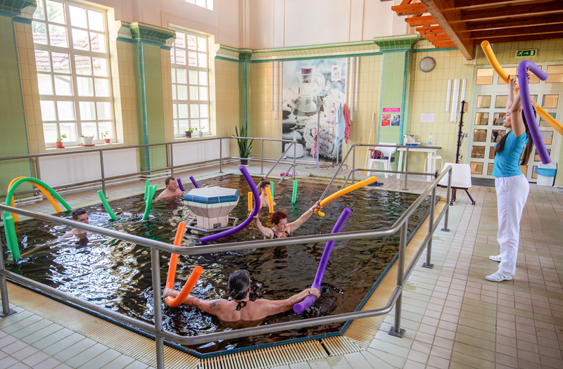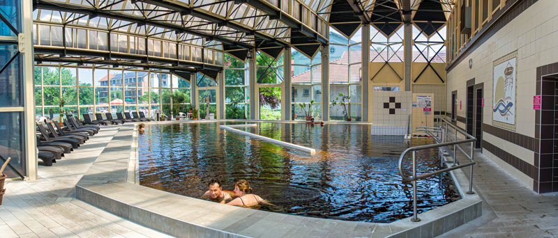A medence és a tér is megújult: új, csúszásmentes burkolatot kapott, műszakilag megújult és akadálymentesített belépési lehetőséggel bővült. A fedett gyógymedence közkedvelt pihenőhely az idősebb korosztály vagy éppen a helyi sportegyesületek számára, a kezelésekre vagy rehabilitációra érkező vendégek körében, akik kezelések után vagy várakozás közben a medencében lazítanak. Visszatérő vendégeink között számos nyugdíjas csoport, sportegyesület is található.